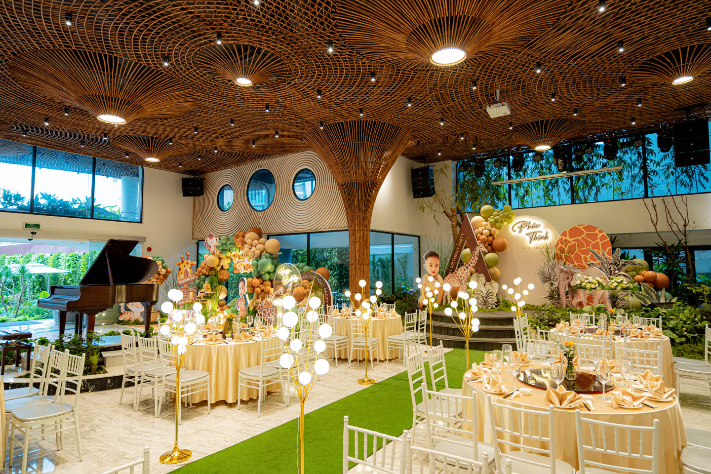 Khách mời thường là người thân trong gia đình, bạn bè thân thiết. Số lượng khách giới hạn nên loại tiệc này cần một không gian riêng, diện tích vừa phải, không quá rộng cầu kỳ, quy cũ cùa Sảnh Cưới mà cần sự ấm cúng, đơn giản và riêng tư. Hiểu được nhu cầu cùa Quý Khách, Amor Resort có hơn 3 khu vực như : Protea Garden, King Garden, Bella Vita, là nơi tổ chức một buổi tiệc thôi nôi vô cùng dễ thương, ấm cúng và trọn vẹn. Khu vực nào cũng tràn nhập thiên nhiên, ánh sáng lung linh của đèn Neon, tiếng nước róc rách của biển nhân tạo, hồ cá Koi, các bãi cỏ xanh mướt cho các bé vui chơi, chạy nhảy hòa mình vào thiên nhiên. Đây là những điểm cộng tuyệt đối , một không gian hoàn toàn khách biệt so với những trung tâm tiệc cưới, nhà hàng khác.Amor Resort thật sự là địa điểm tổ chức tiệc thôi nôi tuyệt vời cho các bé.